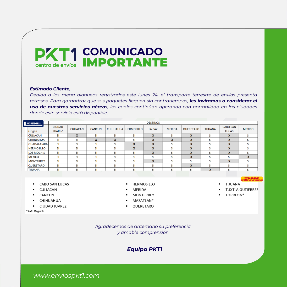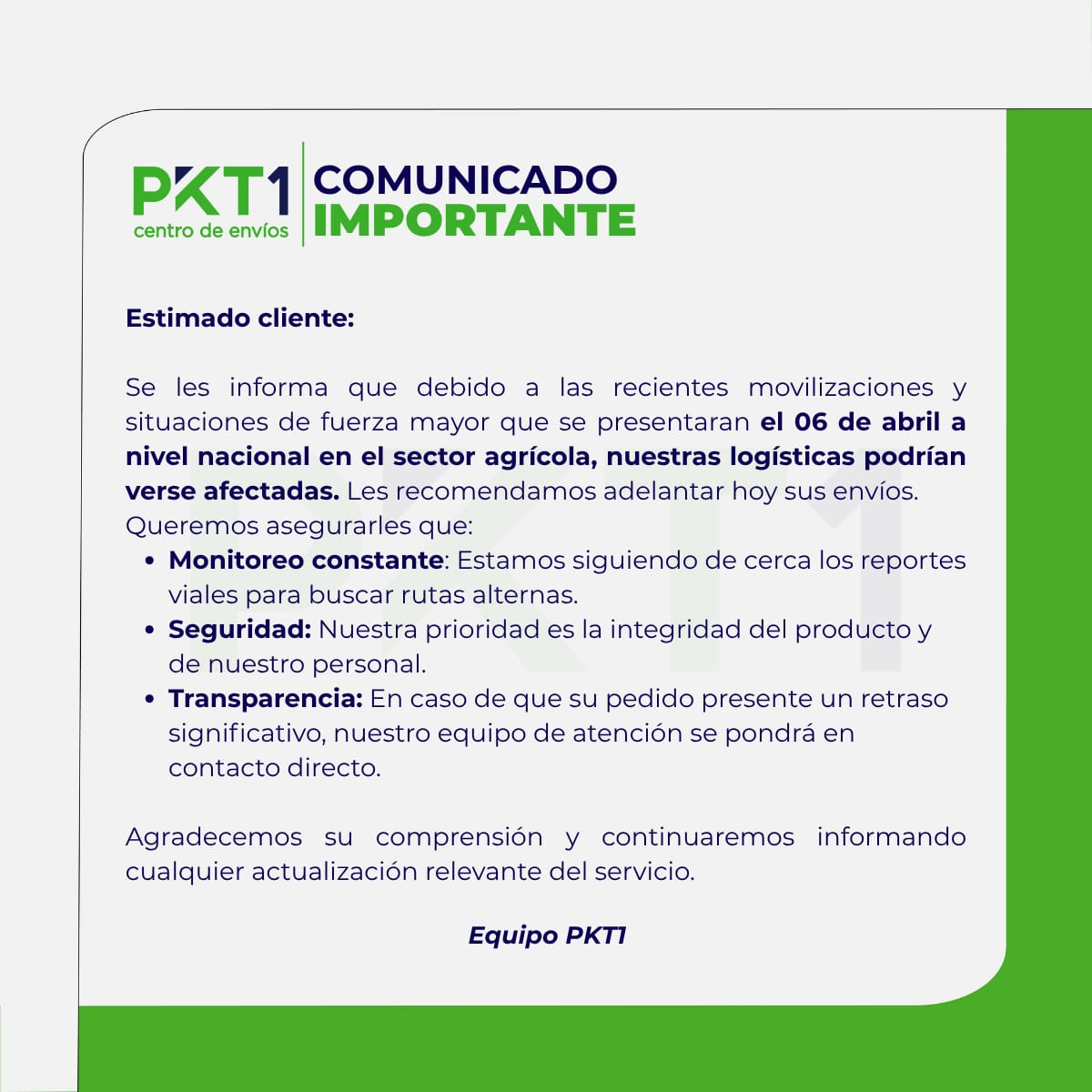 El servicio de PKT1 es muy eficiente en términos de recolección y generalmente las paqueterías afiliadas cumplen los tiempos de entrega que marca el sistema, recientemente se nos mejoró el precio lo que nos dió un poco más de ventaja competitiva, vemos áreas de mejora cómo los envíos al día siguiente porque los que ofrecen están limitados y son más caros que la competencia. En general son una excelente compañía."